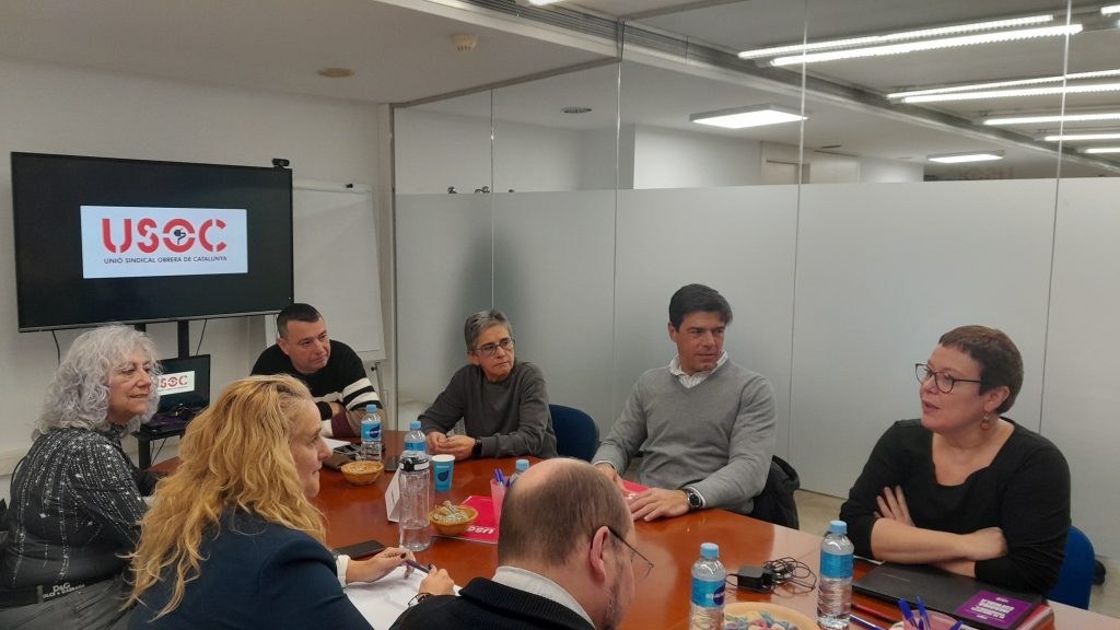 El secretari general de la Unión Sindical Obrera (USO), Joaquín Pérez, ha visitat la seu de la USOC a Barcelona en una visita que forma part de la ronda de contactes que la direcció confederal està realitzant amb les diferents federacions territorials. A més, ha servit per enfortir els vincles entre ambdues organitzacions i posar en comú les línies estratègiques de treball. Pérez ha estat acompanyat per Sara Garcia, secretària d’acció sindical de la USO, que ha aportat la seva visió sobre les prioritats en matèria de negociació col·lectiva i mobilització sindical.