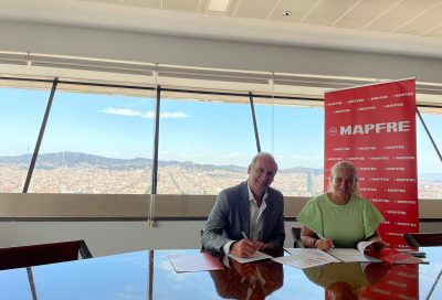 Maria Recuero signa a la Torre Mapfre un conveni que permetrà als afiliats i afiliades gaudir de promocions en matèria d’assegurances, juntament amb altres serveis especials.