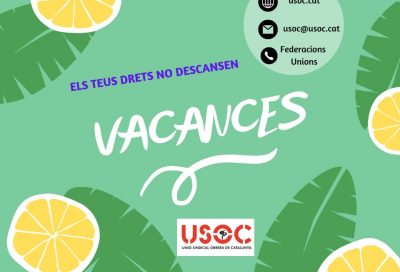 Durant les vacances els teus drets mai descansen, és per això que des de la USOC us volem fer arribar una sèrie d’informacions laborals relatives a les vacances.